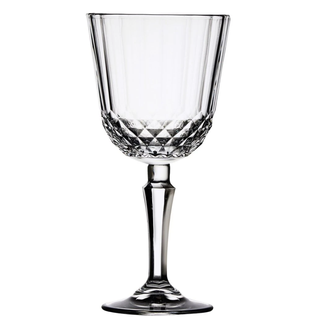 Ett smidigt och elegant vinglas med en vacker slipning av romber nedtill i glaskroppen. Kupan är medelstor och passar utmärkt som allroundvinglas, främst till röda viner. Diony vinglas har en sexkantig stjälk som påminner om de Speakeasyinspirerade glasen från det glada 1920-talet.
