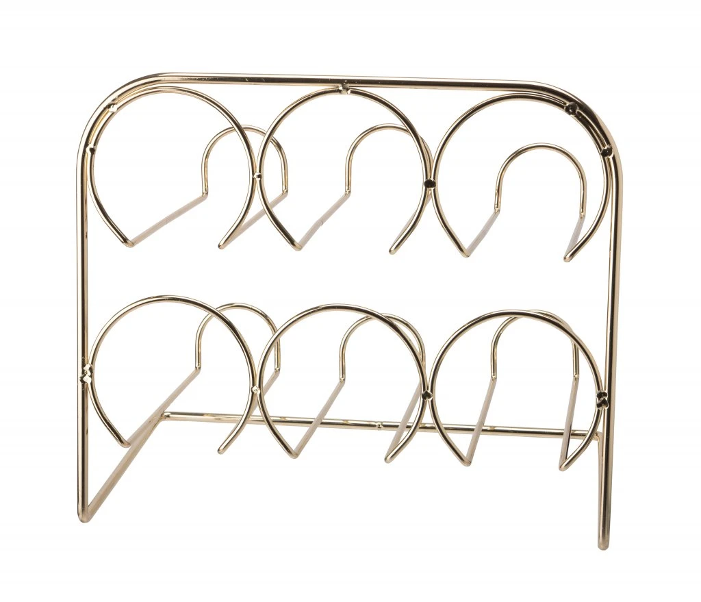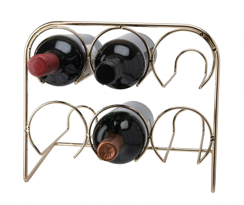 Ett elegant vinställ tillverkat i mässing för 6 st vinflaskor. Stället består av runda stänger som formats för att förvara vin halvt liggande. Mycket stiligt ställ att ha i köket eller i salongen.
