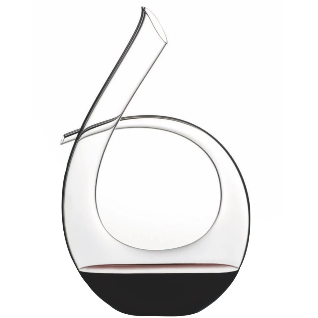 Black Tie Vinkaraff från österrikiska Riedel har en elegant utformning som påminner om ett horn eller ett annat blåsinstrument. Karaffen är öppen i båda ändar vilket underlättar vid både dekantering och servering. Längs med hela designen återfinns en svart linje som skapar ett elegant djup i designen av denna munblåsta Vinkaraff.