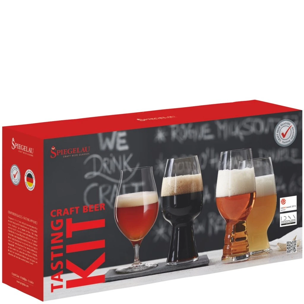 Craft Beer Tasting Kit är en revolutionerande serie med ölglas från Spiegelau. I setet ingår modellerna IPA, Stout, American Wheat och Barrel Aged Beer med ett glas av varje sort.