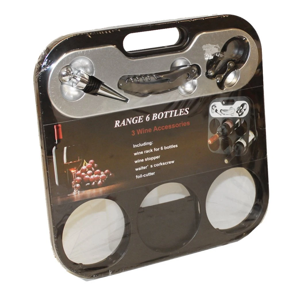 Vinstället rymmer 6 flaskor och har ett greppvänligt handtag. Allt du behöver för att öppna och förvara ditt vin på bästa sätt.